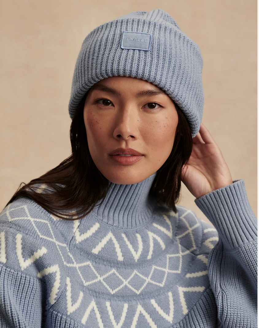 Made to match the Patricia cardigan, the Carly is crafted from the same Soft Viscose fabric in all-over rib with fleck detailing. With its deep turn-back, this soft beanie is designed to elevate your winter wardrobe and keep you warm.
